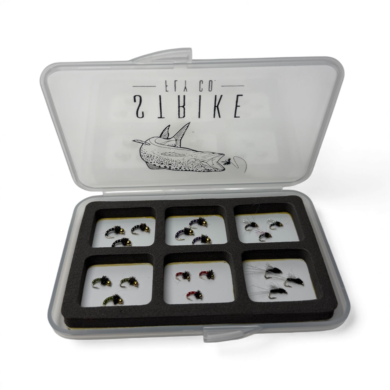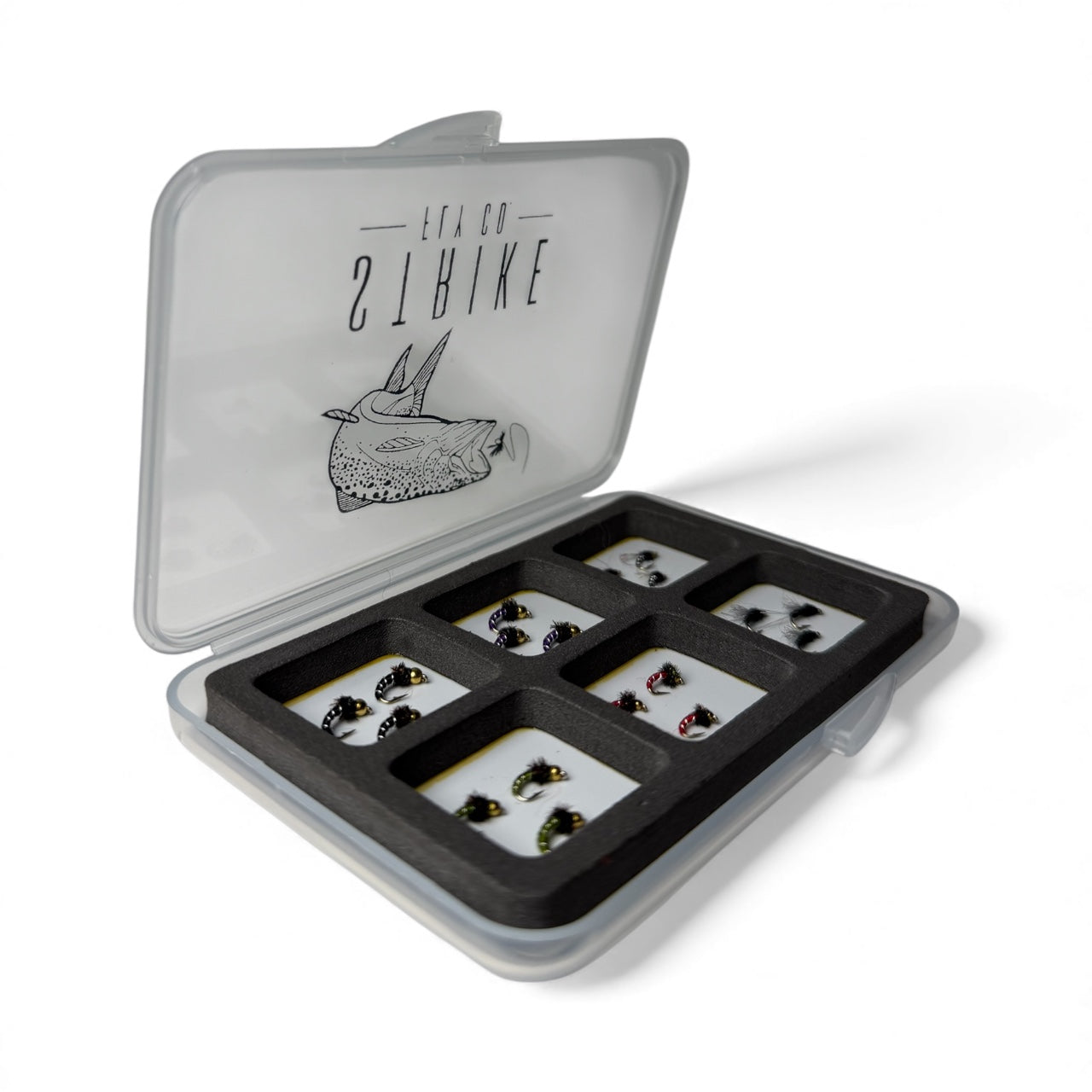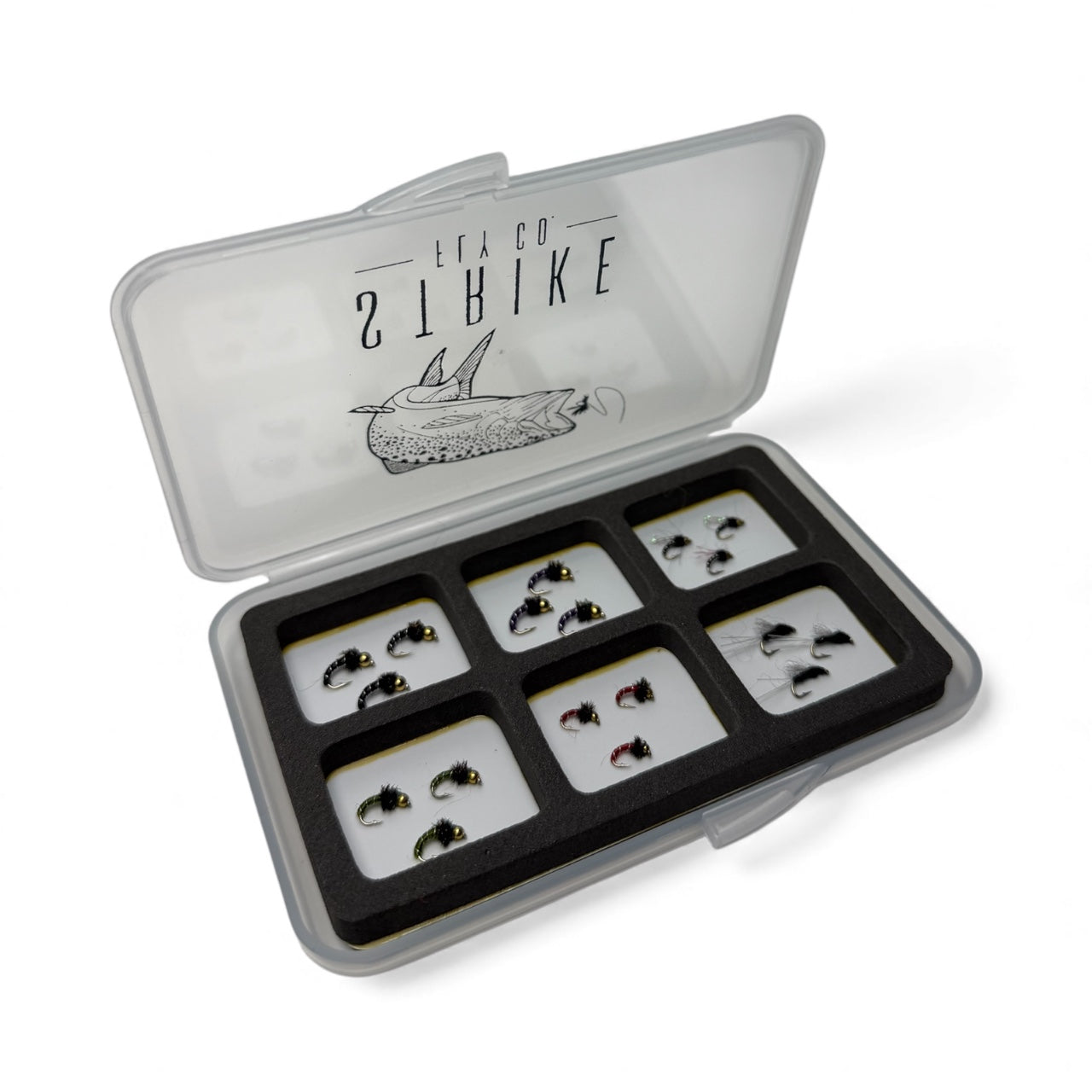 Strike Fly Company Midge Assortment delivers a curated selection of midge patterns that are designed to imitate the micro-insects trout feed on year round.