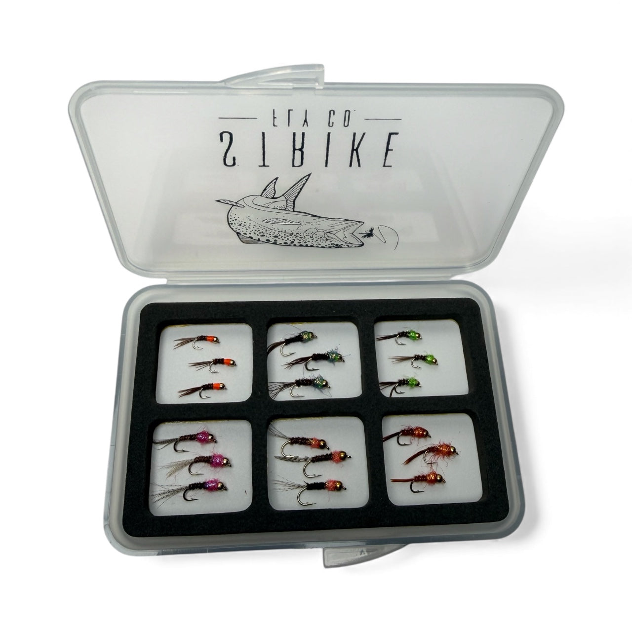 This assortment includes the following Tungsten Beadhead Frenchie patterns and sizes (3 flies per pattern):